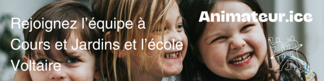 Les jardins de Voltaire constitue l’une des branches d’activité de notre structure. Il s’agit d’un centre d’animation périscolaire prenant place au sein de l’école voltaire dans lequel sont proposés des activités artistiques et de loisirs aux jeunes selon la pédagogie Cours et Jardins.